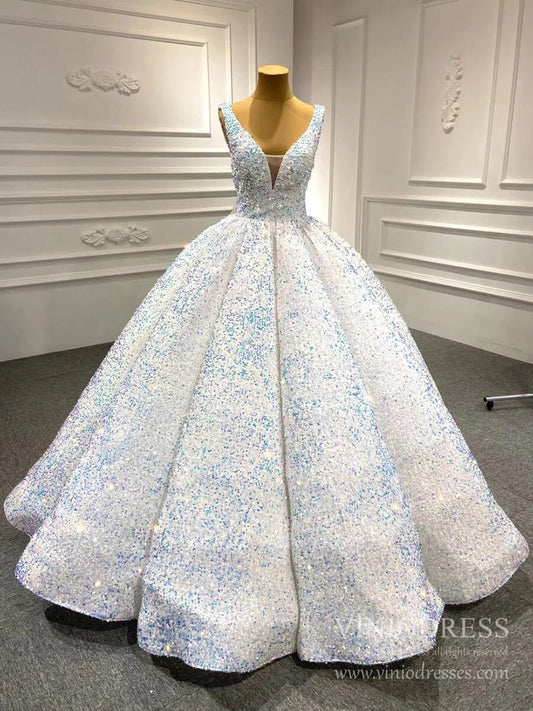 Robe de mariée blanche brillante 66991 Col en V
