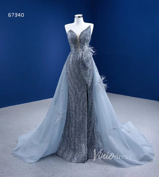 Robes de bal de luxe avec jupe-jupe grise perlée et fente 67340