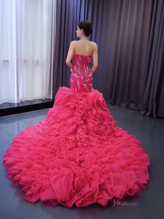 Robe de mariée Memraid à volants perlés et longue traîne VINIODRESS
