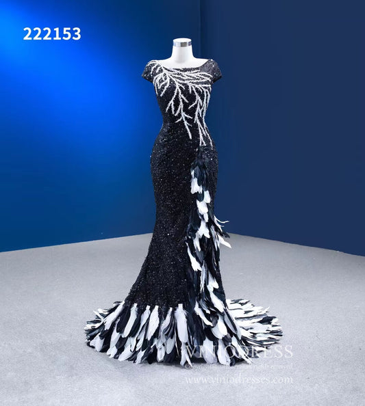 Robes de soirée noires et blanches robe de concours de perles mancherons 222153