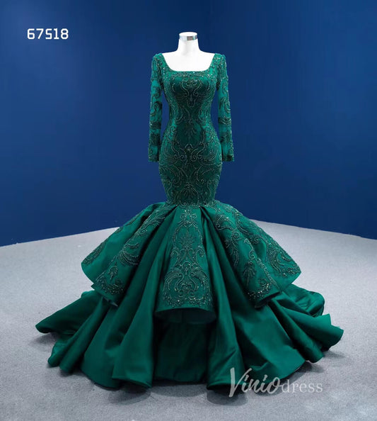 Robes de mariée modestes sirène vert émeraude avec manches 67496