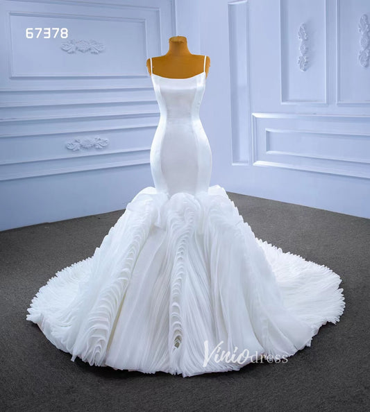 Robes de mariée sirène en satin simples, robe de mariée à volants 67378