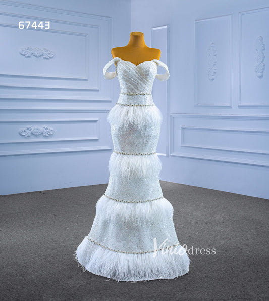 Robes de mariée en plumes de sirène perlées, épaules dénudées, 67443