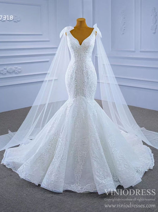 Robes de mariée sirène en dentelle ivoire avec manches cape Viniodress 67318 viniodress