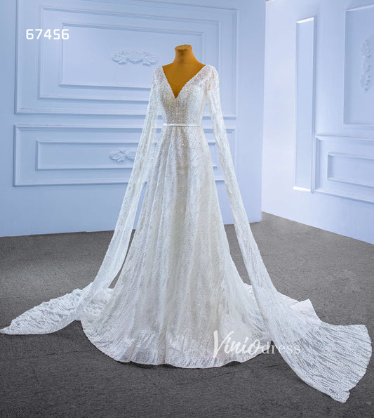 Robe de mariée sirène perlée avec manches longues cape 67503