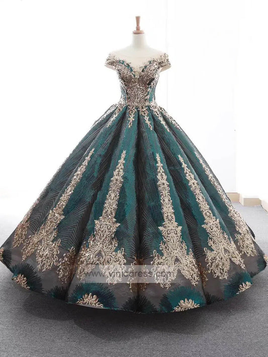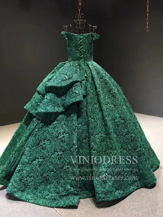 Robe de bal en dentelle vert émeraude Vintage, robe de princesse FD1255 viniodress