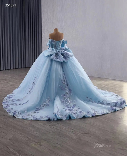 Robe de bal longue bleu ciel, épaules dénudées, robe de princesse FD1163 viniodress