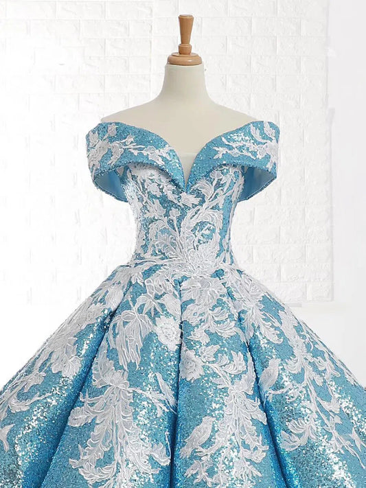 Robes de bal bleu clair vintage robe de Quinceanera à épaules dénudées 66667 viniodress