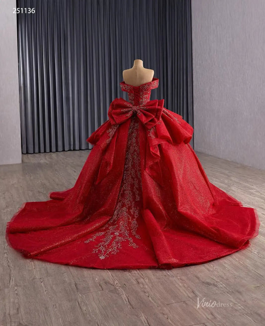 Robes de bal longues à paillettes scintillantes robe de Quinceanera rouge FD1119 viniodress