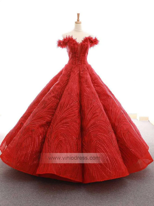 Robe de Quinceanera en dentelle dorée, épaules dénudées, robe de bal, robes de bal FD1136 viniodress