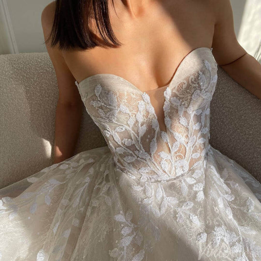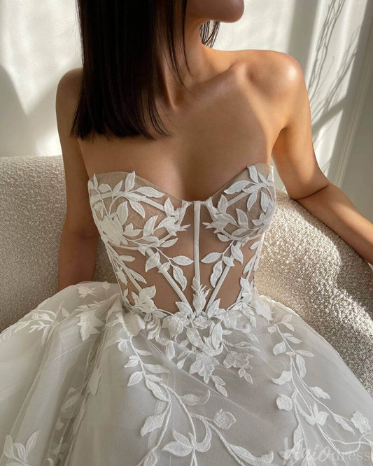 Ivory Strapless Lace Applique Wedding Dresses Sweetheart Outdoor Bridal Gown AW1033