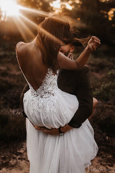 Ivory Lace Applique Rustic Wedding Dresses V-Neck Country Bridal Gown VW2153