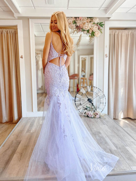 Robe de soirée sirène en dentelle lavande, avec des appliques, bretelles Spaghetti, FD2683