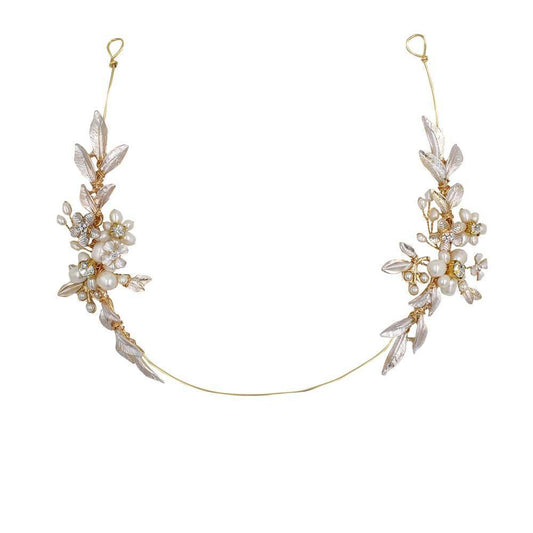 Bandeau en cristal et perles doré clair avec feuille AC1199