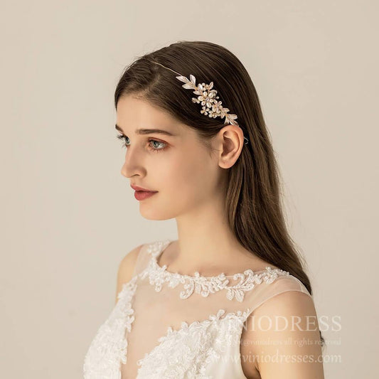 Vigne de cheveux en fleurs d'or rose avec perles AC1192
