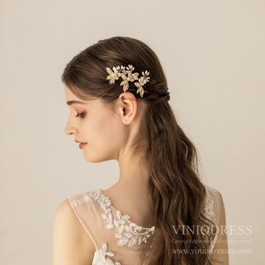 Peigne de mariée fleur d'or avec spray perlé AC1202