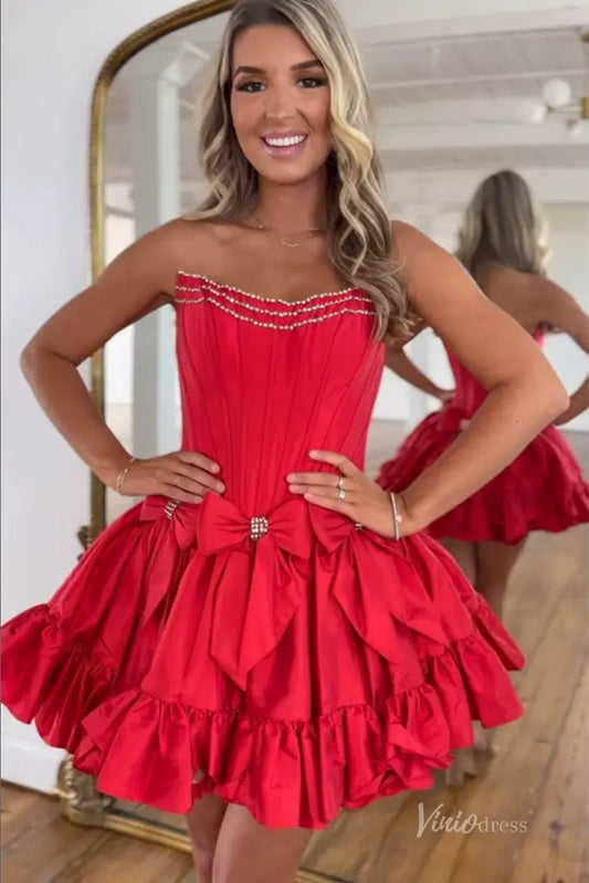 Robes de soirée en satin rouge sans bretelles, robe de cocktail plissée SD1272