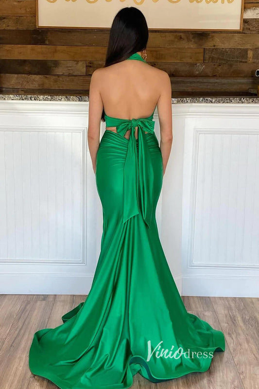 Robes de bal en satin vert avec robe de soirée sirène deux pièces fendue FD3260