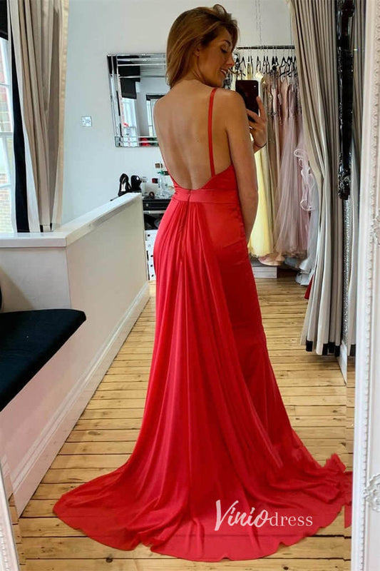 Robes de bal en satin rouge Robe de soirée sirène à col en V FD3184
