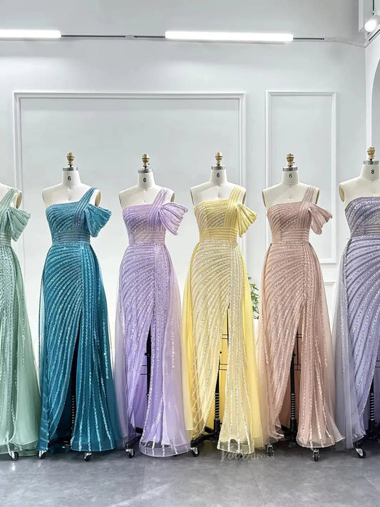 Robe de bal fendue en perles, tenue formelle de luxe des années 20, FD2382