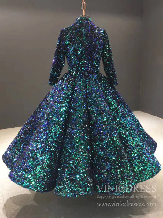 Robes de bal dorées scintillantes à col haut et manches longues 67271 viniodress