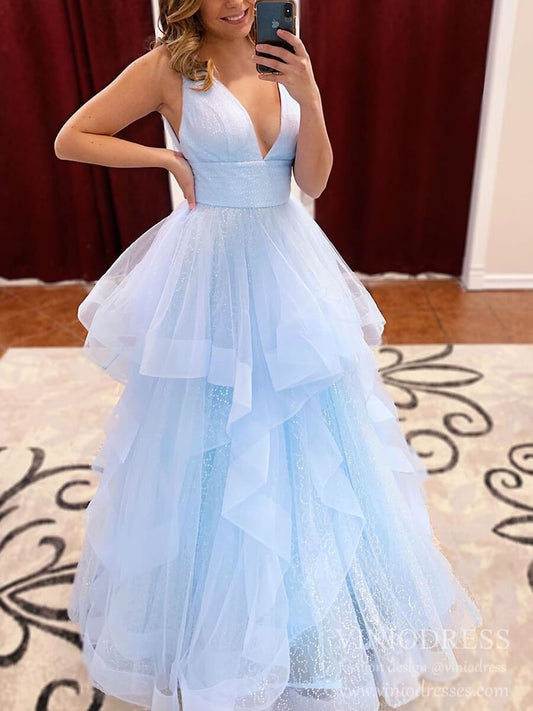 Robes de bal à volants lavande scintillantes robe de bal junior en tulle à paillettes FD1401B