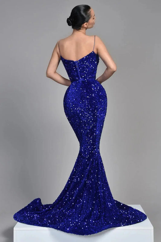 Royal Blue Sequin Mermaid Prom Dresses 2025 with Spaghetti Strap & Lace Up Back – FD5061