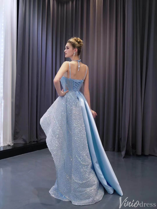 Blue Sequin Mermaid Prom Dresses Spaghetti Strap Evening Dress FD4085