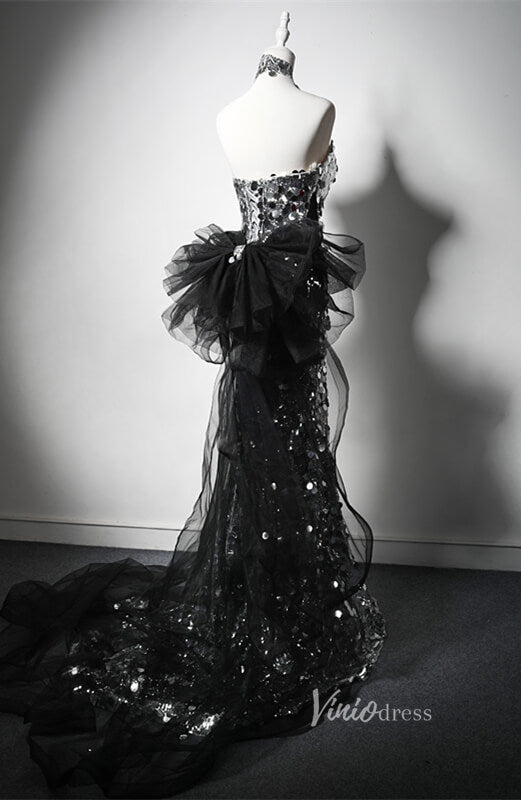Silver Sequin Mermaid Prom Dresses Strapless Bow Tie Evening Dress AD1210