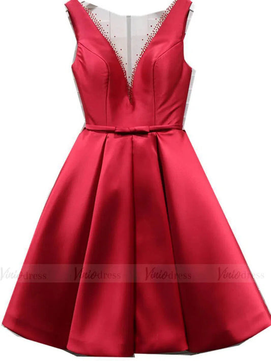 Robes de remise de diplôme rouges simples à col en V, longueur genou, robe Hoco SD1210