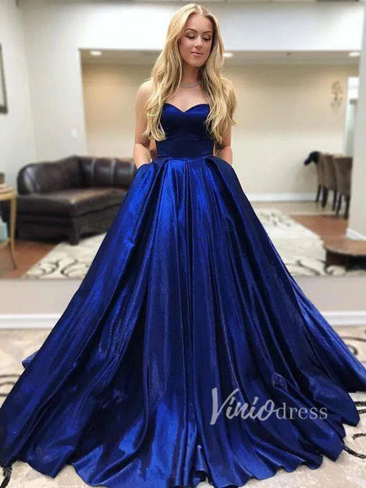 Robes de bal longues bleu marine simples sans bretelles avec fente FD1624