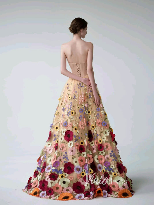 Robe de bal sans bretelles à fleurs 3D multicolores avec dos corset FD2900D
