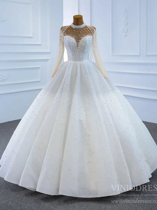 Robes de mariée en perles de perles Haute Couture à manches longues VW1783