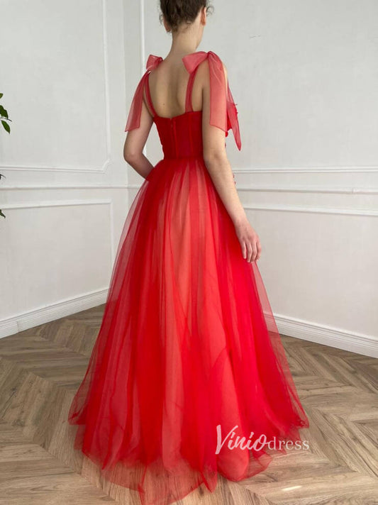 Robes de soirée en tulle rouge, robe de soirée à bretelles spaghetti, SD1407