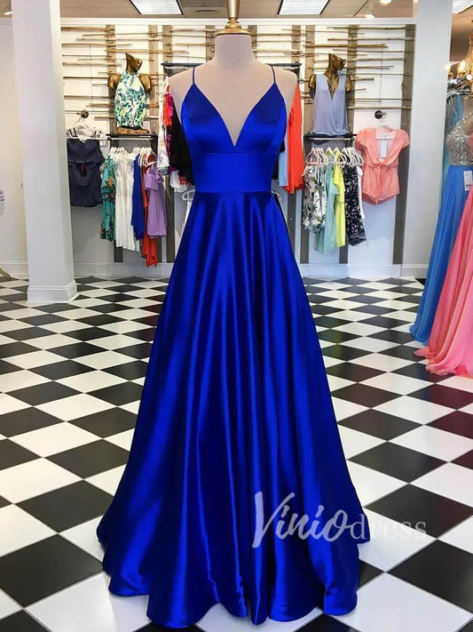 Robes de bal simples bleu clair à bretelles spaghetti avec poches FD1551