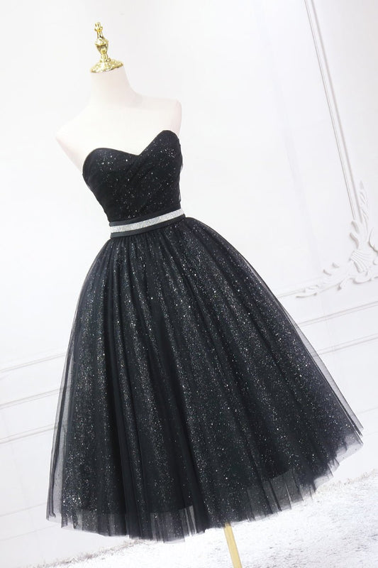 Robes de soirée noires mi-longues scintillantes SD1220B