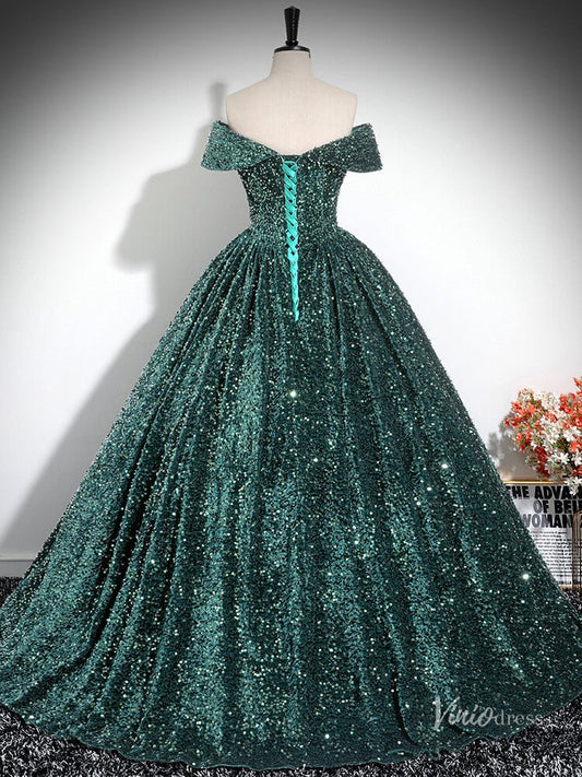 Sparkly Green Sequin Prom Ball Gown Off the Shoulder Quinceanera Dresses BG025