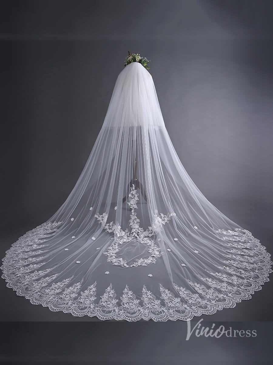 Voile cathédrale appliqué en dentelle avec fard à joues Viniodress TS17135