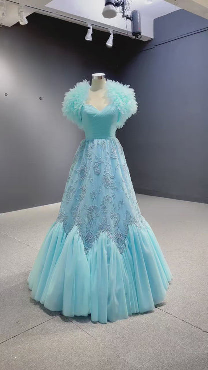 Robe de concours bleu aqua perlée, robe de bal en tulle à volants, 2022 67419