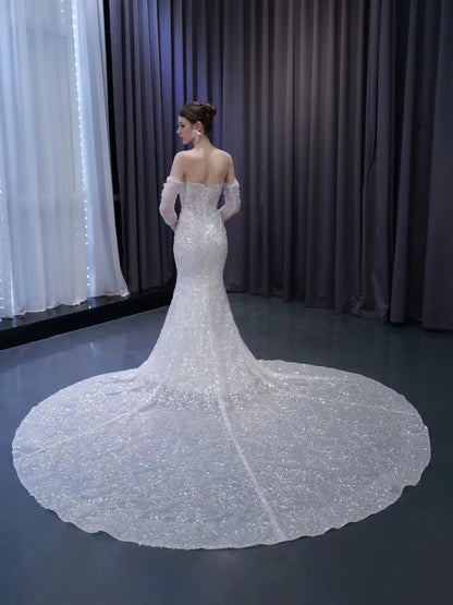 Robes de mariée sirène sans bretelles perlées manches amovibles 231106