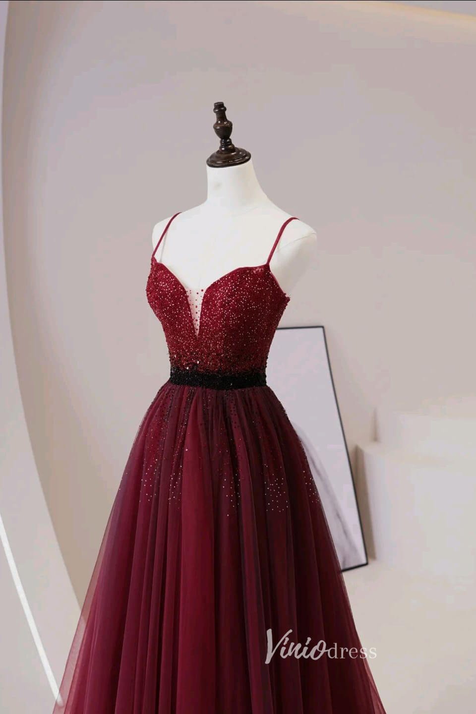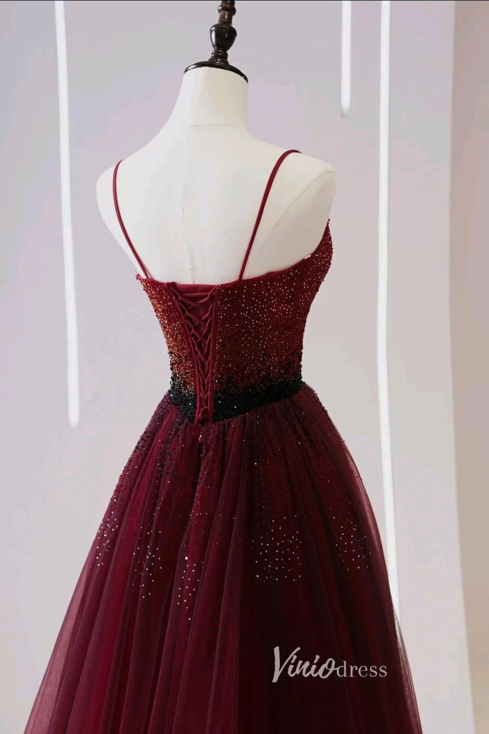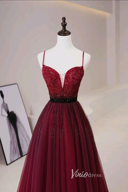 Robes de bal perlées bordeaux robe de soirée à bretelles Spaghetti AD1034