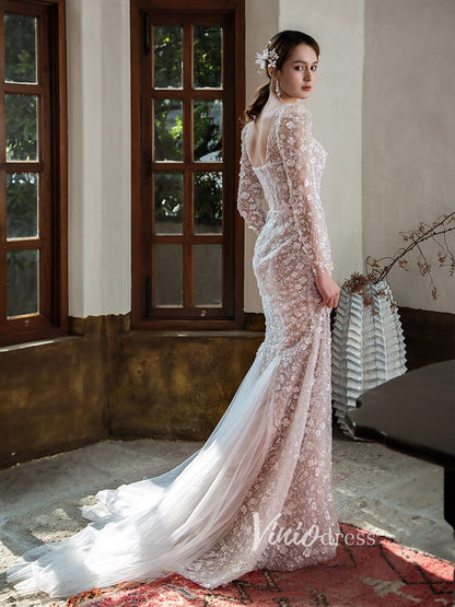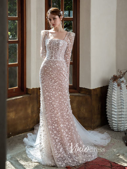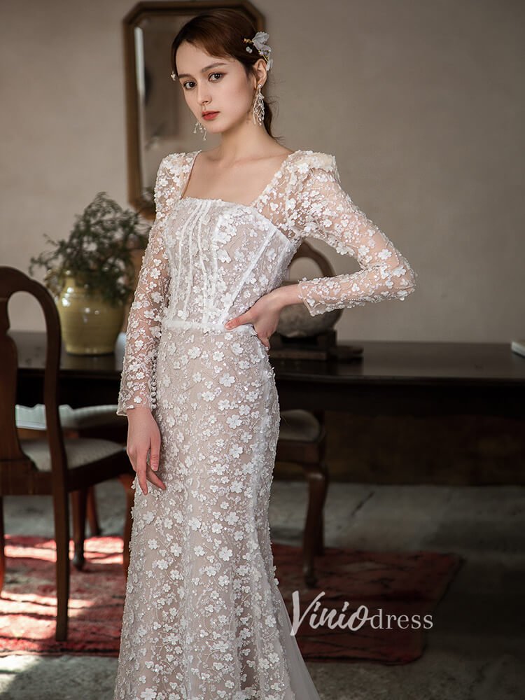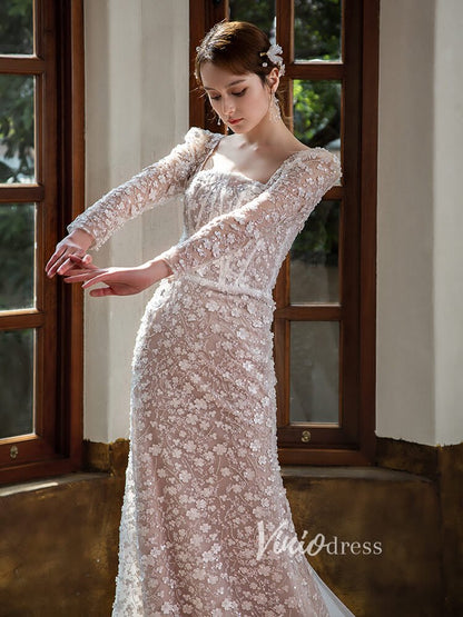 Robes de mariée sirène perlées champagne robe de mariée à manches longues VW2194C