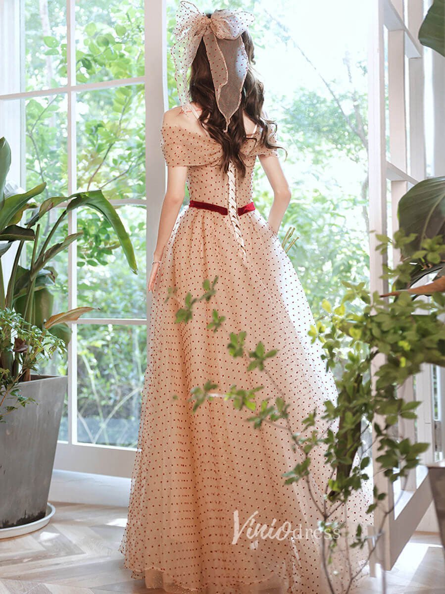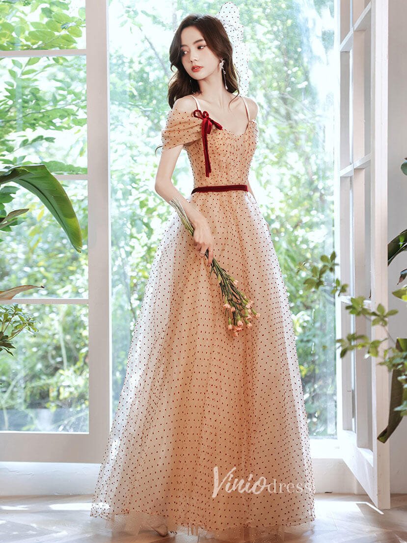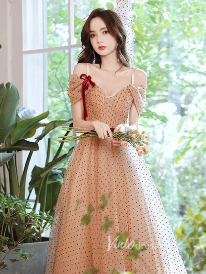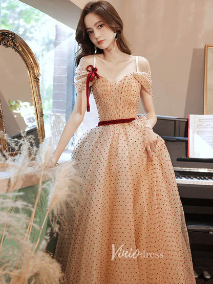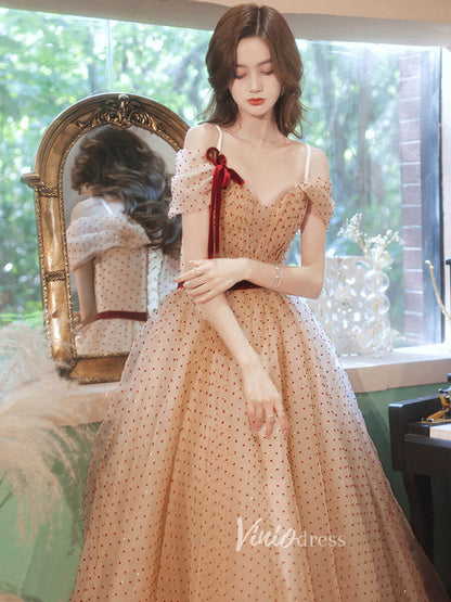 Robes de bal en tulle à pois champagne, robe de soirée à épaules dénudées, FD3187