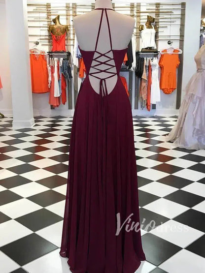 Robe de bal simple en mousseline de soie, décolleté en V, avec fente longue, robe de demoiselle d'honneur, FD1373