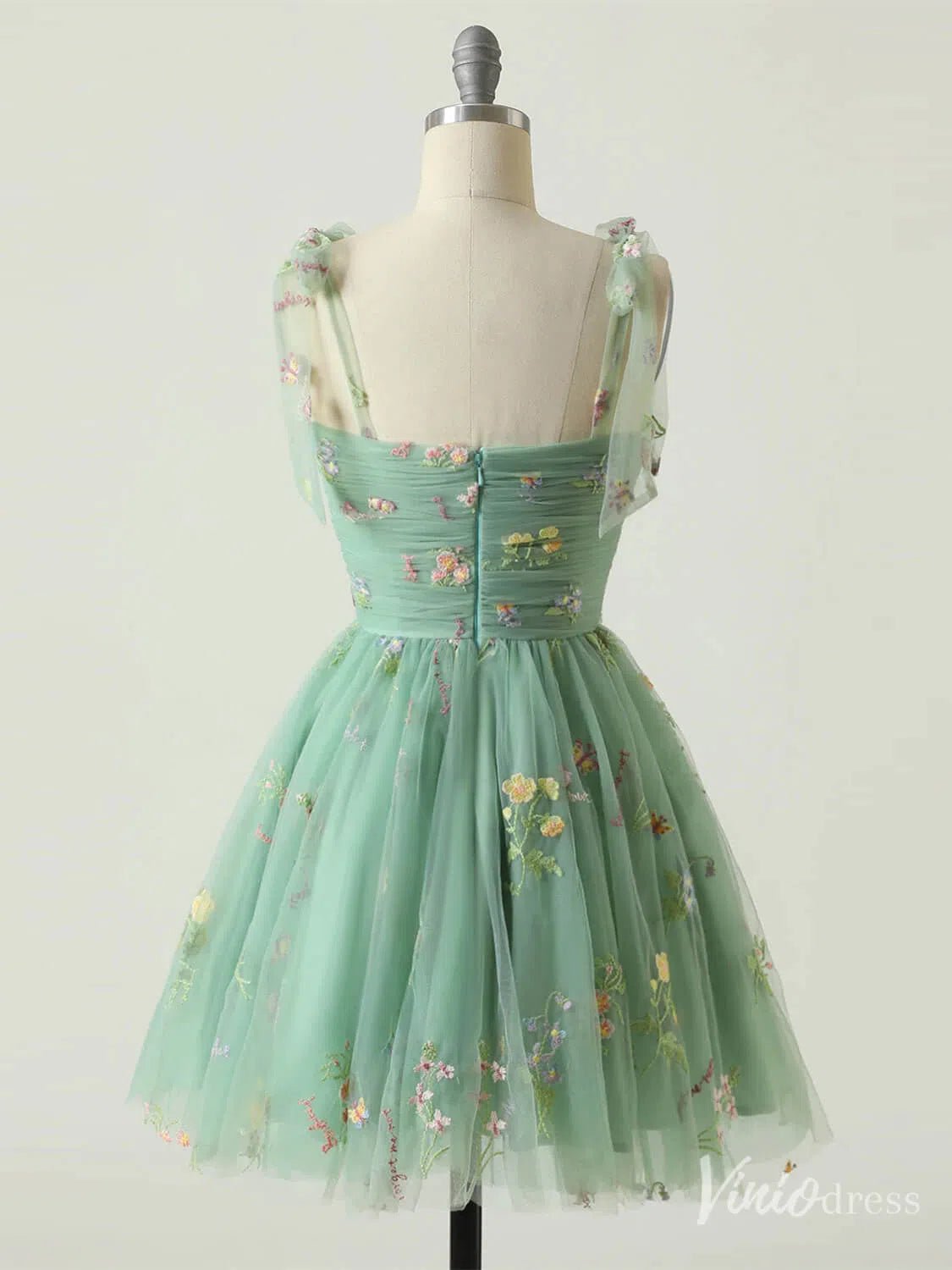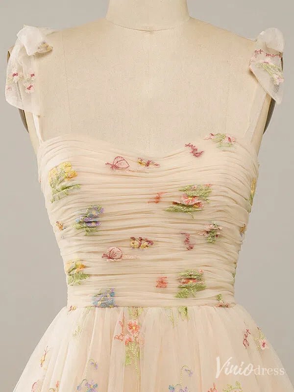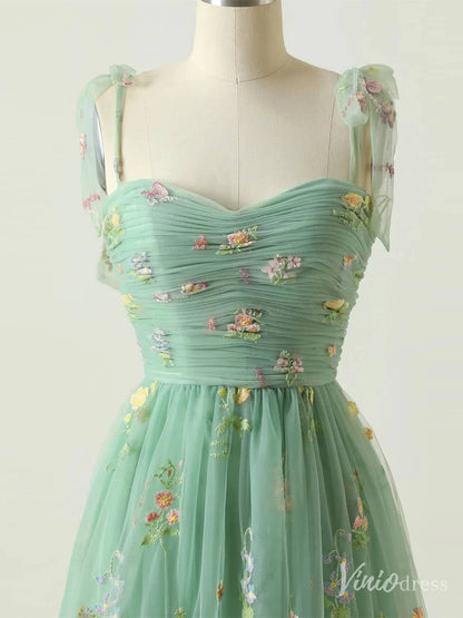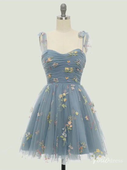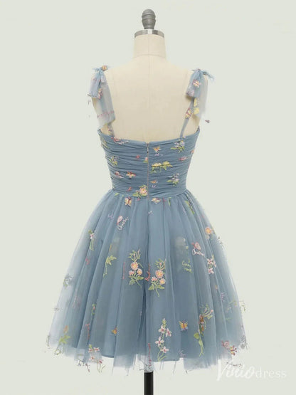 Floral Lace Homecoming Dresses Bow-Tie Spaghetti Strap Short Prom Dress FD4080S