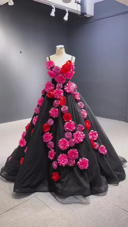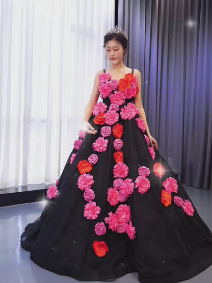 Robe de bal fleurie Vintage noire robe douce 15 robe coing 67505