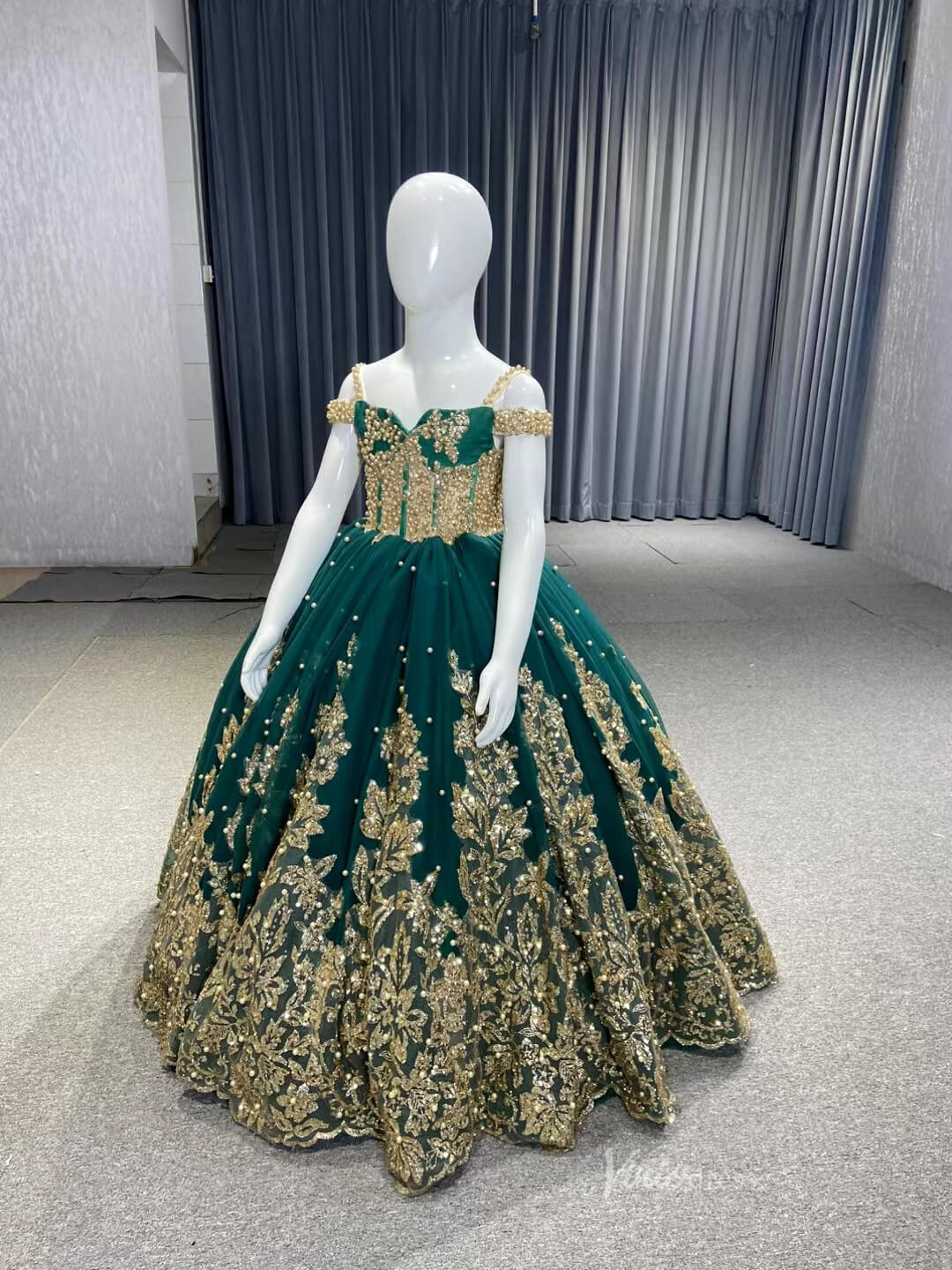 Faire preuve d'audace! Laissez votre tout-petit briller dans cette magnifique robe de bal verte, ornée d'appliques dorées scintillantes. Faites une déclaration puissante avec cette élégante robe de princesse, parfaite pour une soirée de concours. Allons-y!