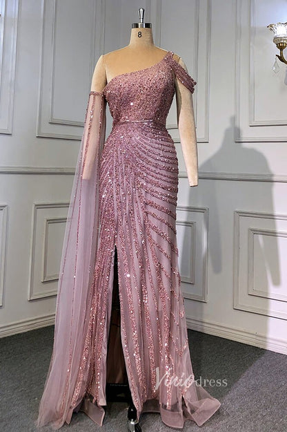 Brillant La robe de bal sirène comporte une épaule et des manches extra longues.