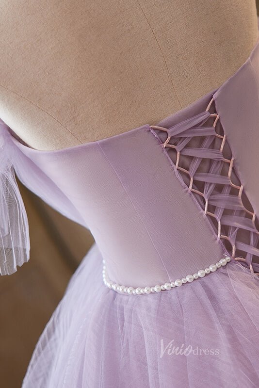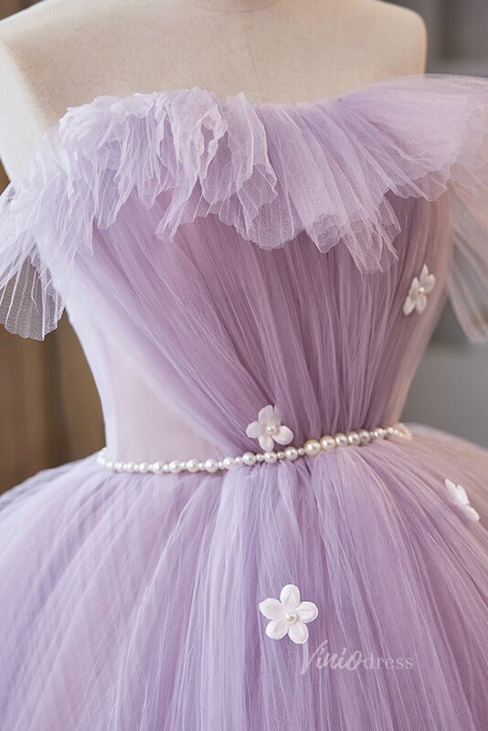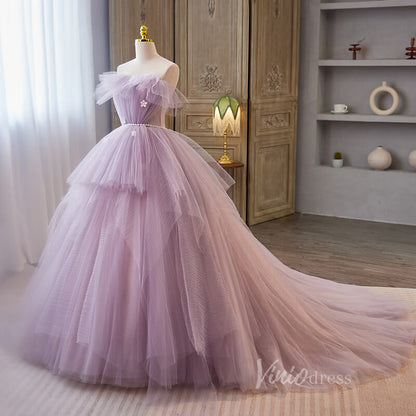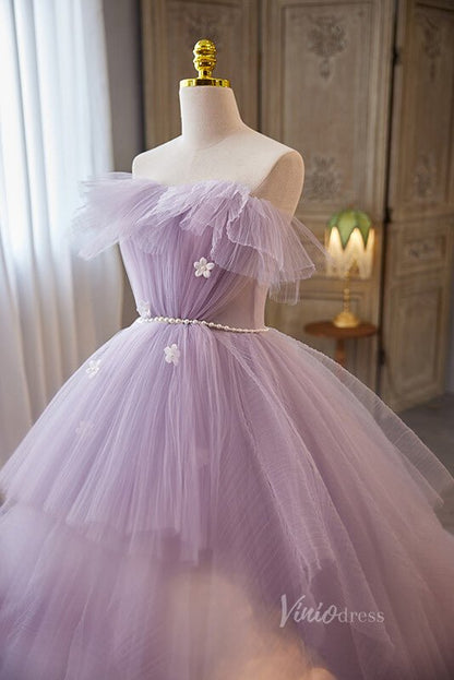 Robes de Quinceanera à volants lavande, robe de bal à épaules dénudées, AD1068