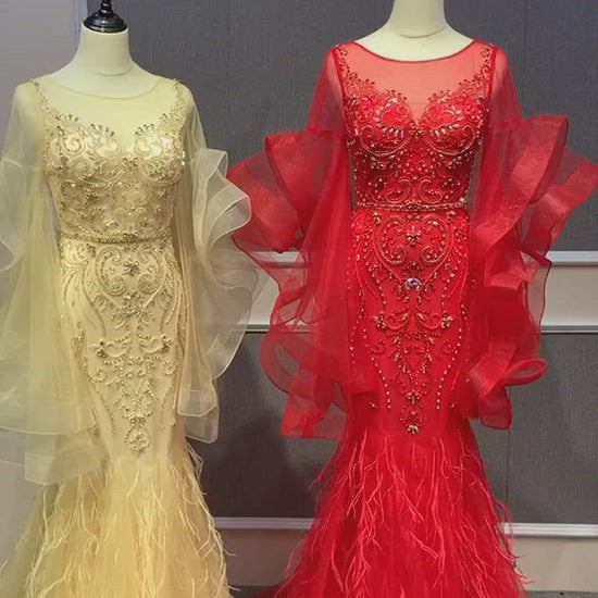 Robe de soirée à manches longues à volants robe de bal perlée Vintage FD2478